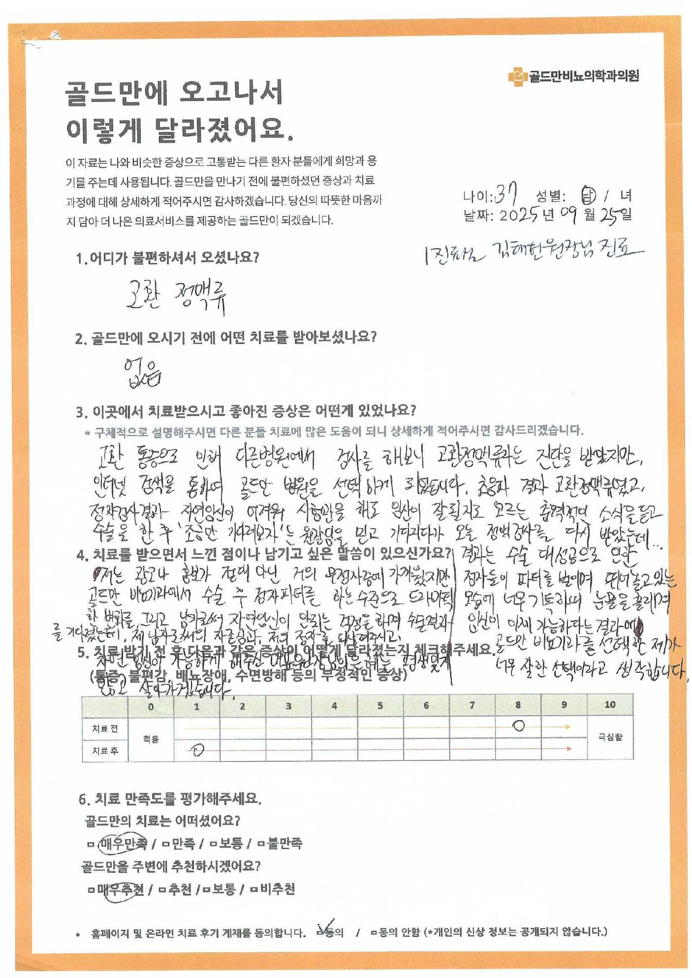 골드만 비뇨의학과에서 치료를 받으신 환자 분들이