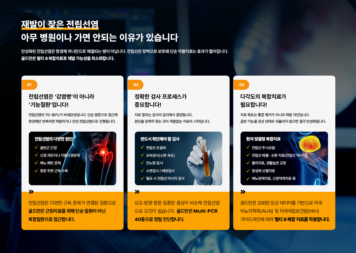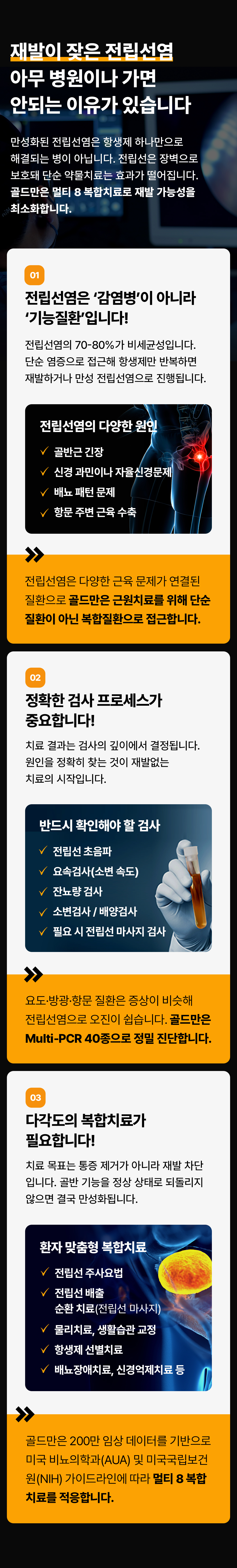 02 잦은 재발 원인 규명이 정확하지 않으면 치료 후에도 반복적으로 재발할 수 있습니다.